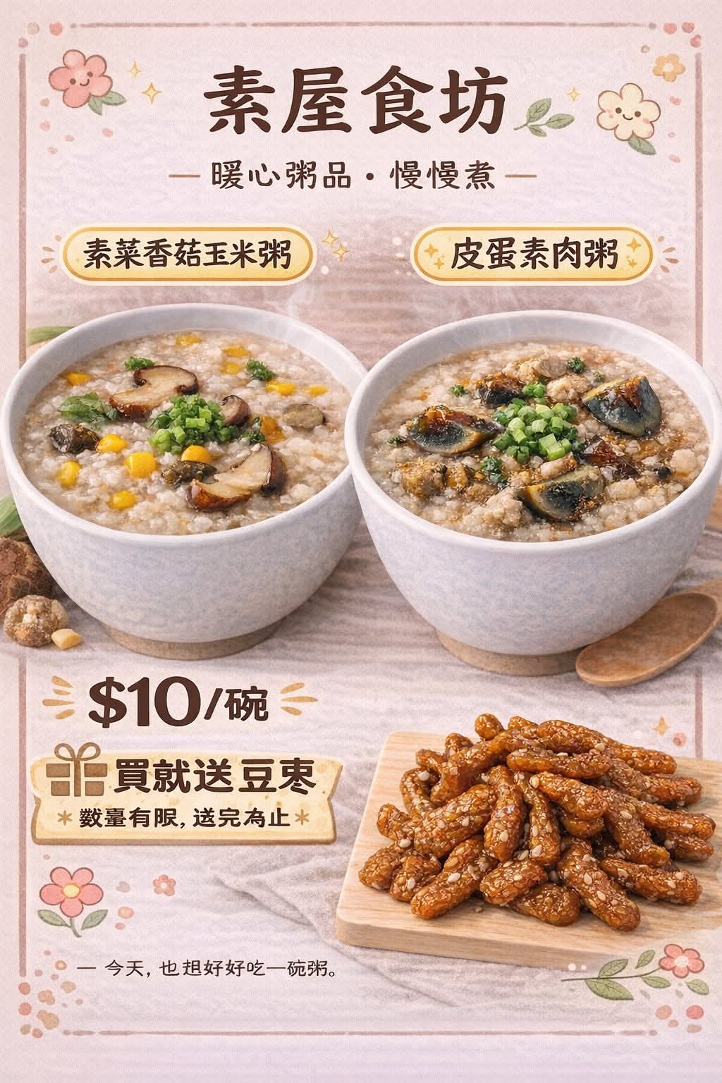 5️⃣ 皮蛋素肉粥 $10