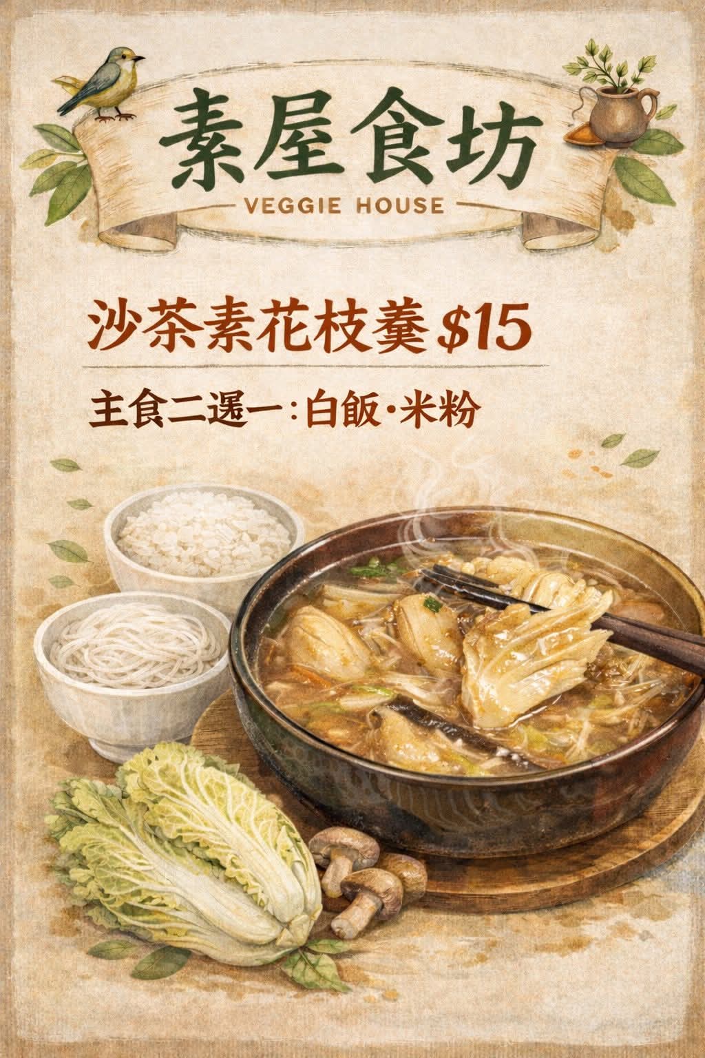 2️⃣ 沙茶素花枝羹 $15