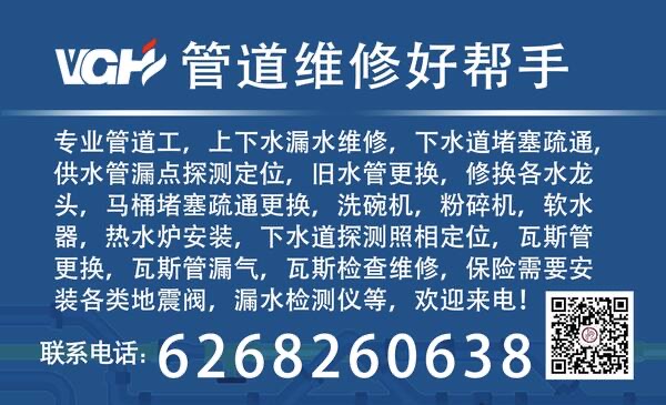 专业管道工,上下水漏水维修,下水道堵塞疏通,供水管漏点探测定位,旧水管更换,换修各类水龙头,淋浴阀,热水炉,炉头瓦斯、过滤器、打碎机,软水器等安装;瓦斯管泄漏检测维修,瓦斯管更换,保险所需瓦斯加装地震阀、漏水监测仪,欢迎致电联系:6268260638